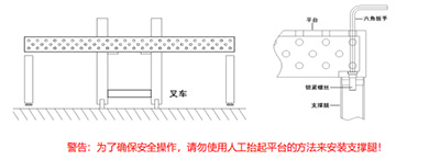注:使用叉車安裝平臺時(shí)叉車的前叉部位長度一 定要大于平臺的寬度。