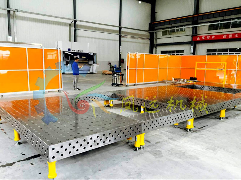 二維柔性焊接工作臺(tái)孔系分為:Ф28和Ф16兩大系列,按結(jié)構(gòu)分為二維柔性組合工裝和三維柔性組合工裝,工裝平臺(tái)按材料分為鋼件平臺(tái)和鑄鐵平臺(tái)以及復(fù)合板平臺(tái);技術(shù)參數(shù):28系列工裝平臺(tái)孔距為100mm,16系列工裝平臺(tái)孔距為50mm,平臺(tái)上均刻有相應(yīng)的網(wǎng)格線,根據(jù)客戶要求在平臺(tái)的兩直角邊上面可以刻畫毫米標(biāo)度尺;