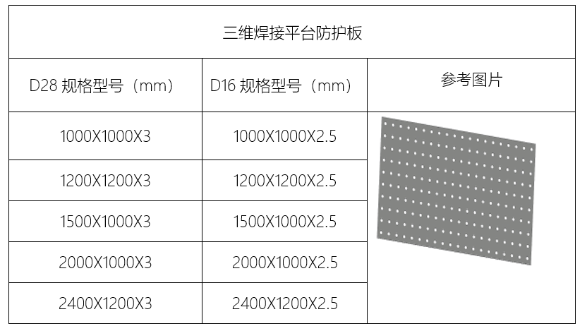 【鳳遠機械三維焊接平臺防護板的規(guī)格型號】: